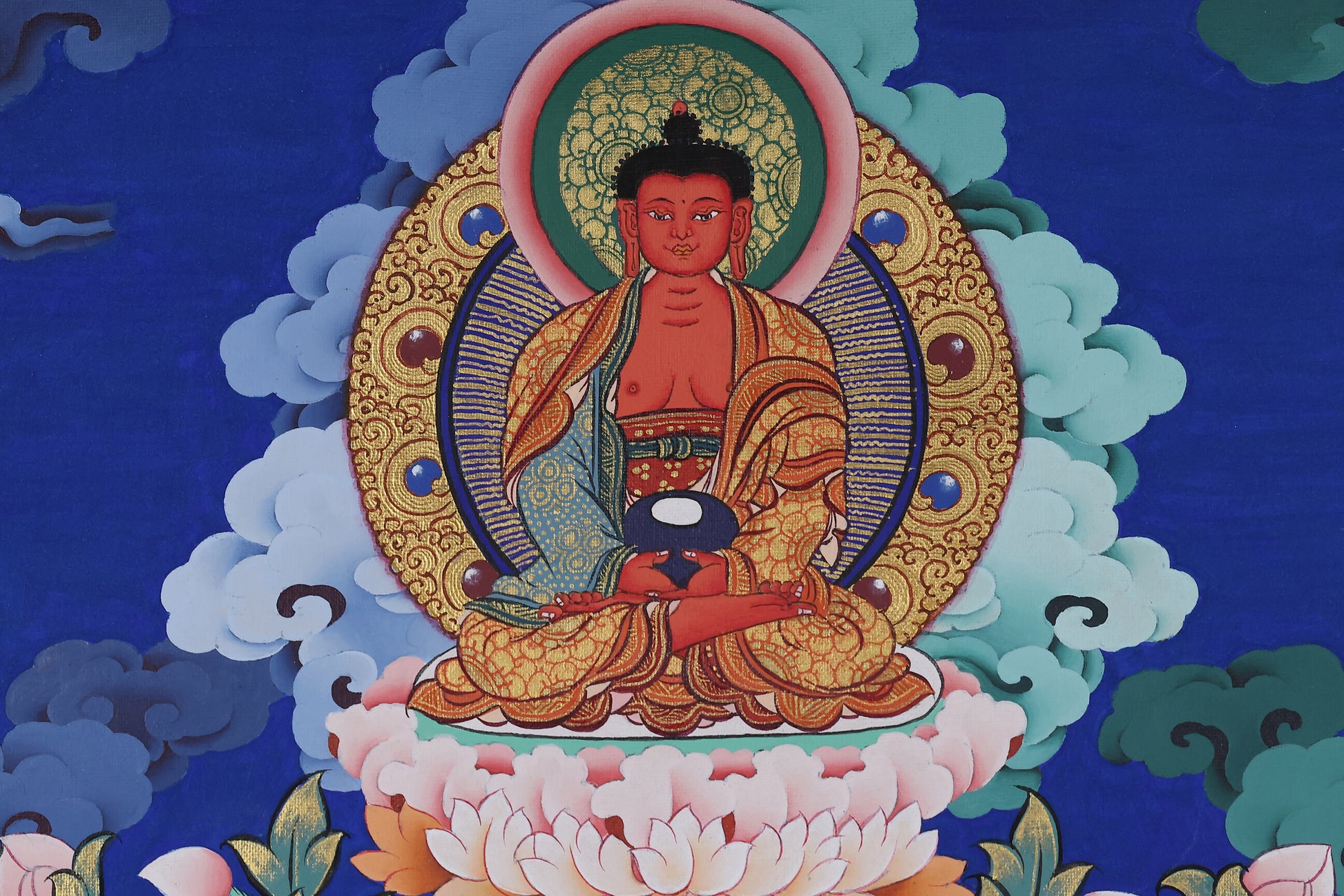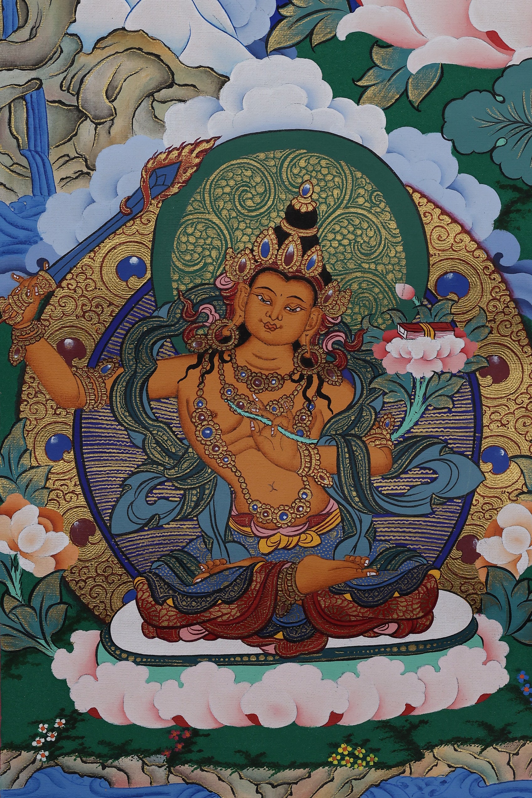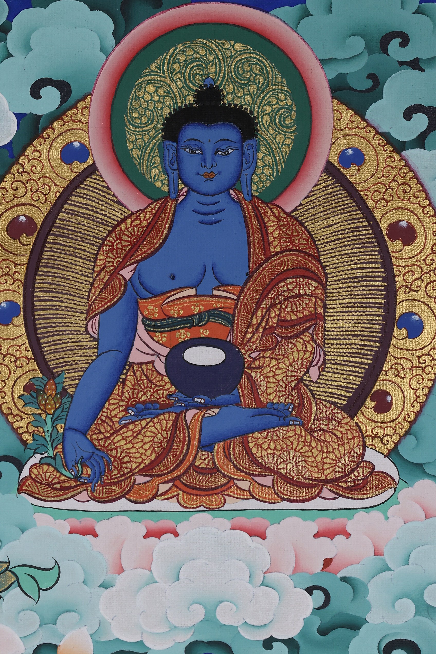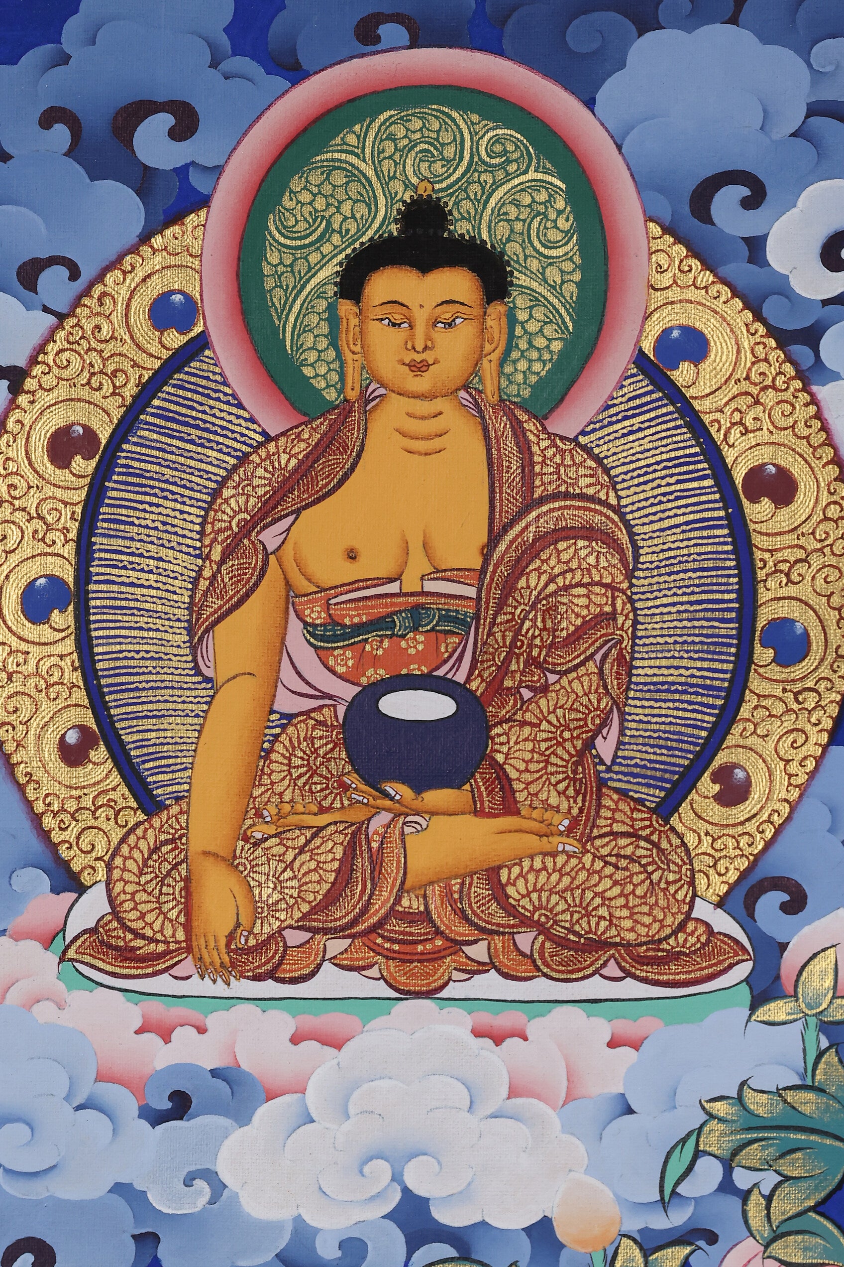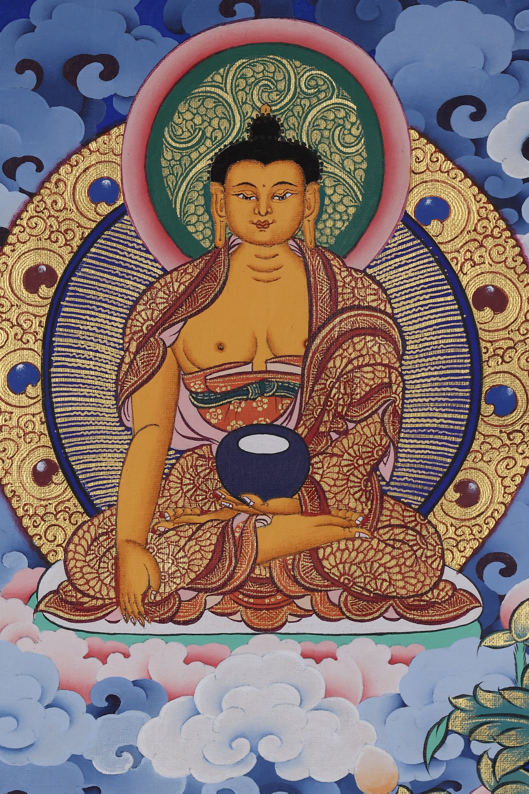 This piece is hand-painted by master Tibetan artisans, following the sacred Iconometry Sutra and traditional techniques: