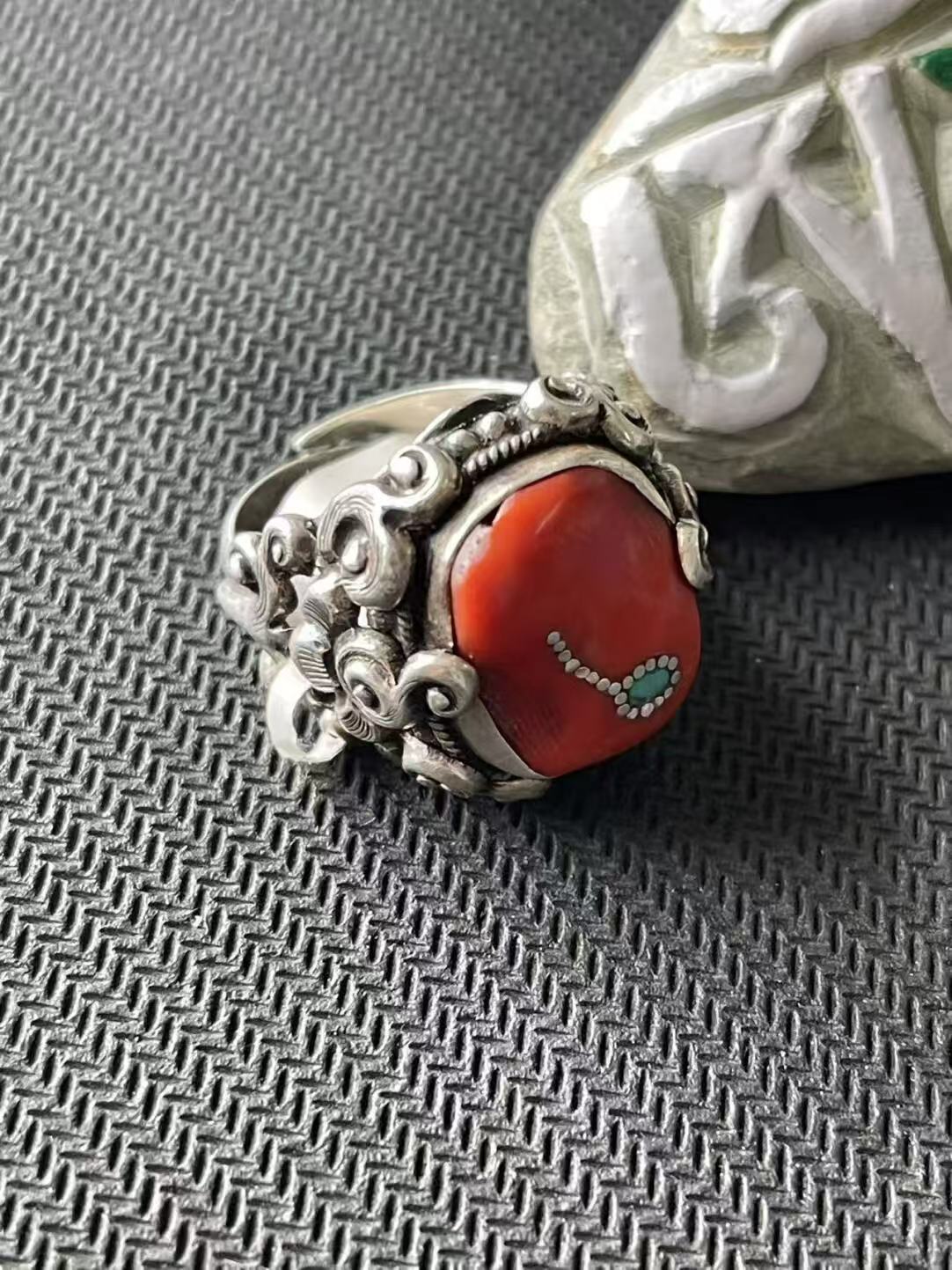 Discover the pinnacle of Himalayan craftsmanship with our tibetan-buddhist jewelry: 925 silver red palace art ring. Deeply rooted in the Tibetan Buddhist Jewelry Culture, this heavywork masterpiece is a profound expression of jewelry art, combining royal palace aesthetics with sacred spiritual traditions.