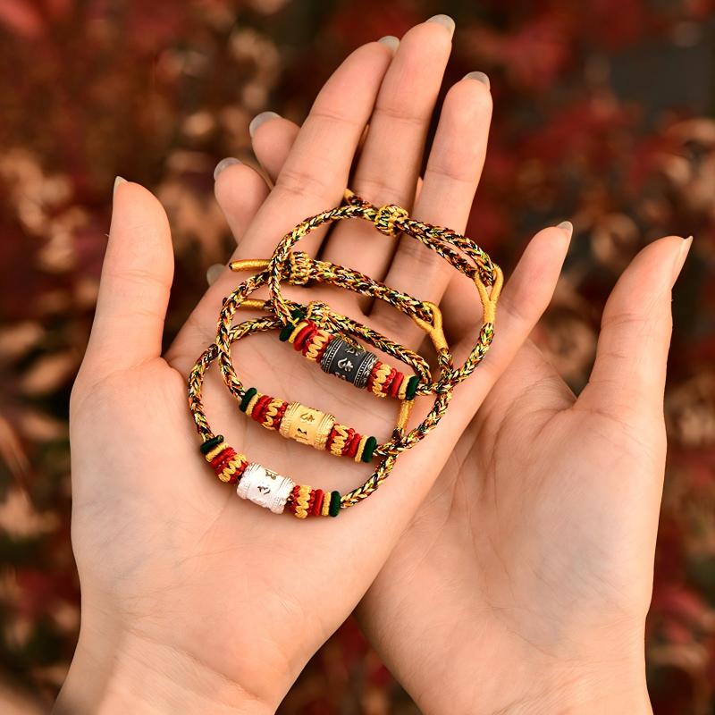 · Style Options: Red Braided Rope (Luck), Solid Bangle, or Linked Mantra Beads