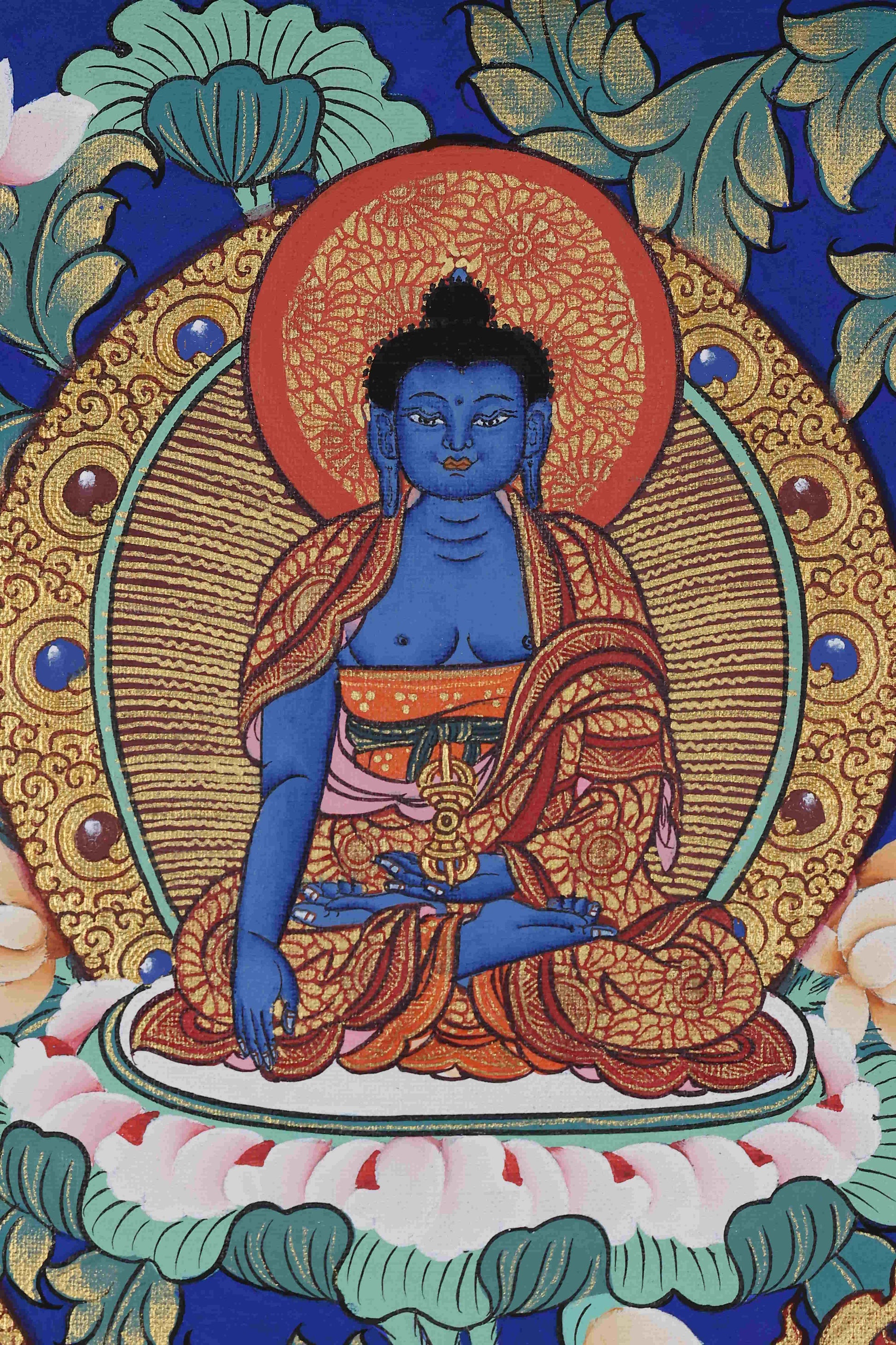 • Accented with gold leaf (imparting a sacred luminosity, a hallmark of traditional Thangka art)