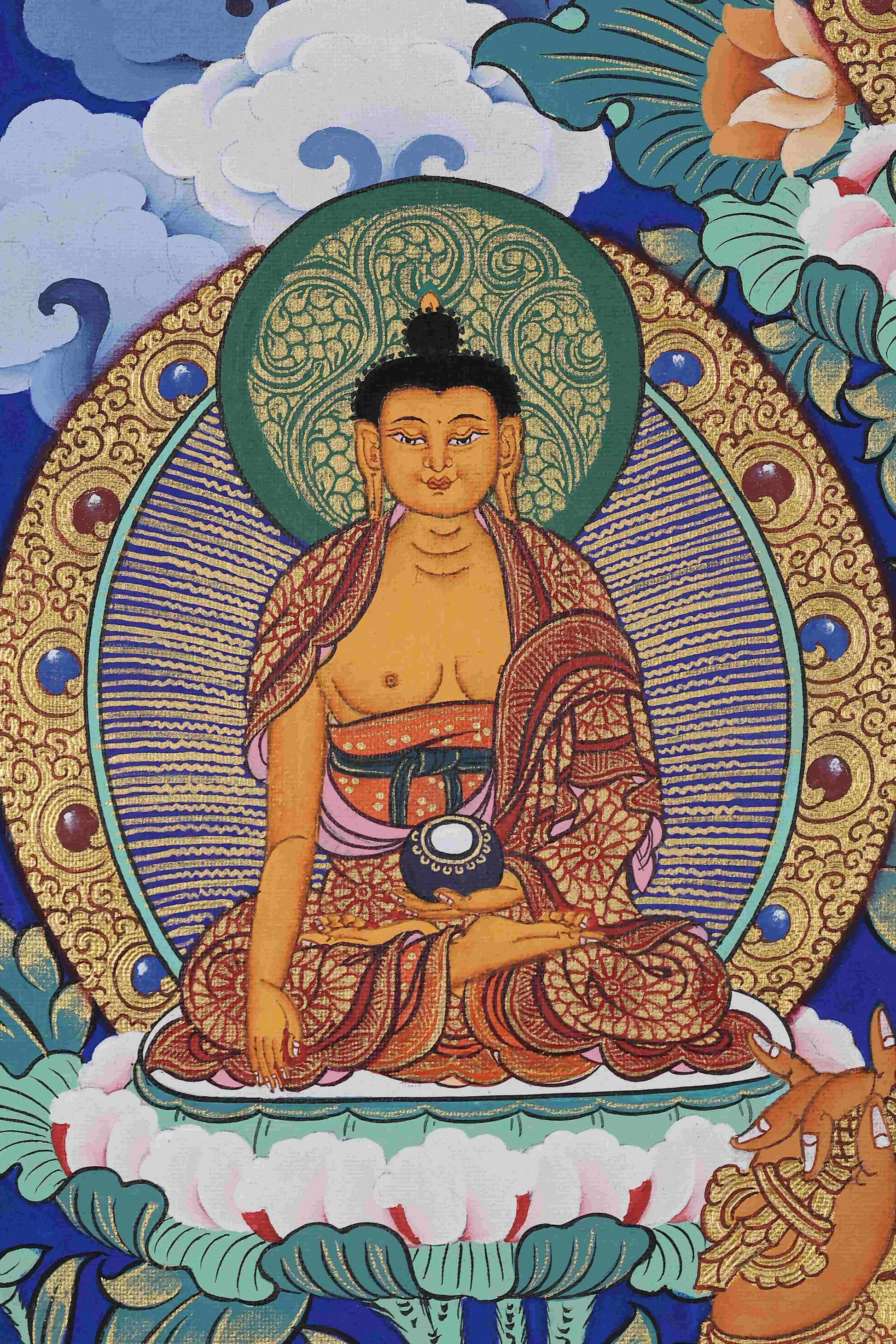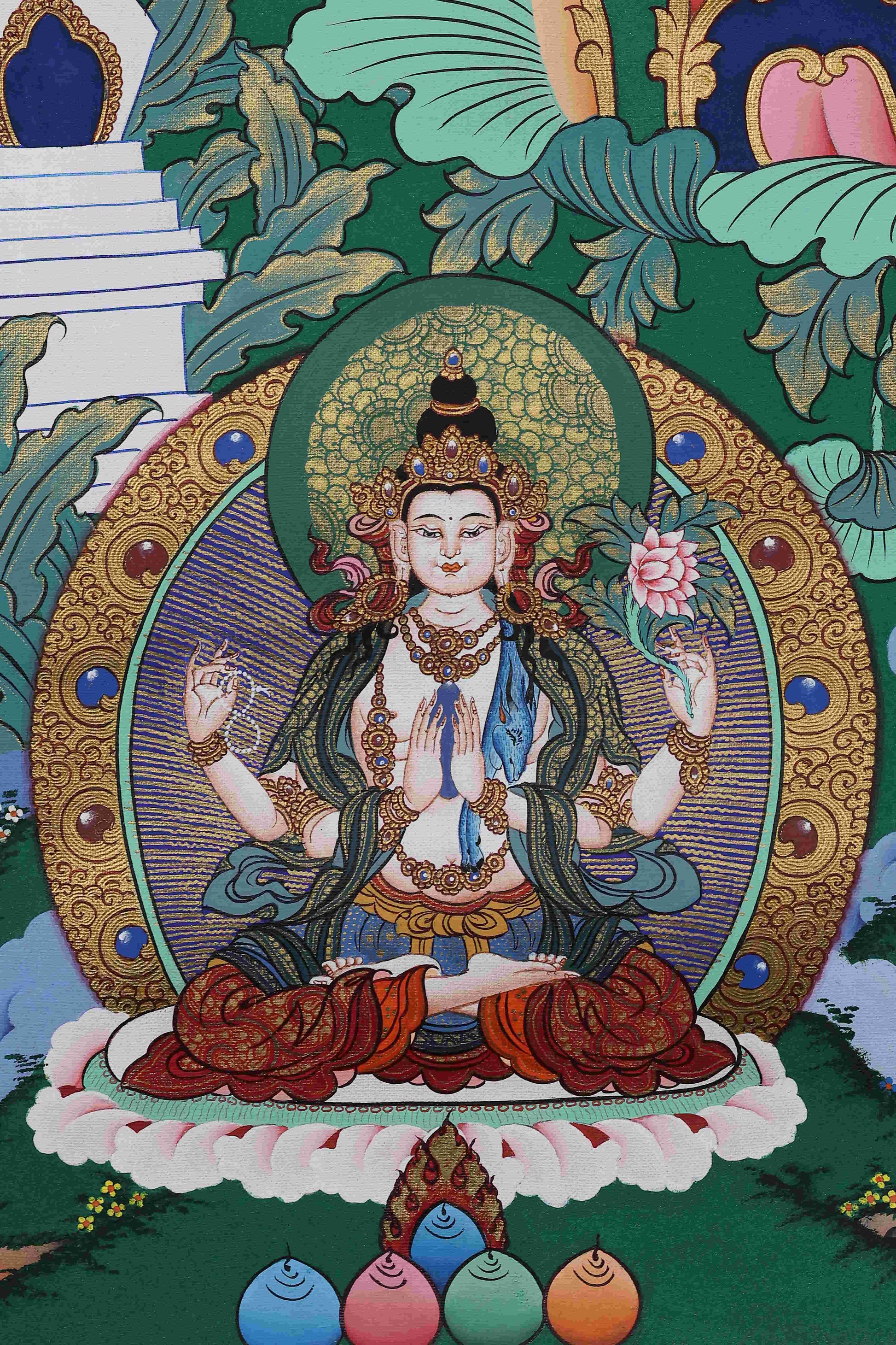 Every detail of this Thangka is meticulously crafted by master Tibetan artists: