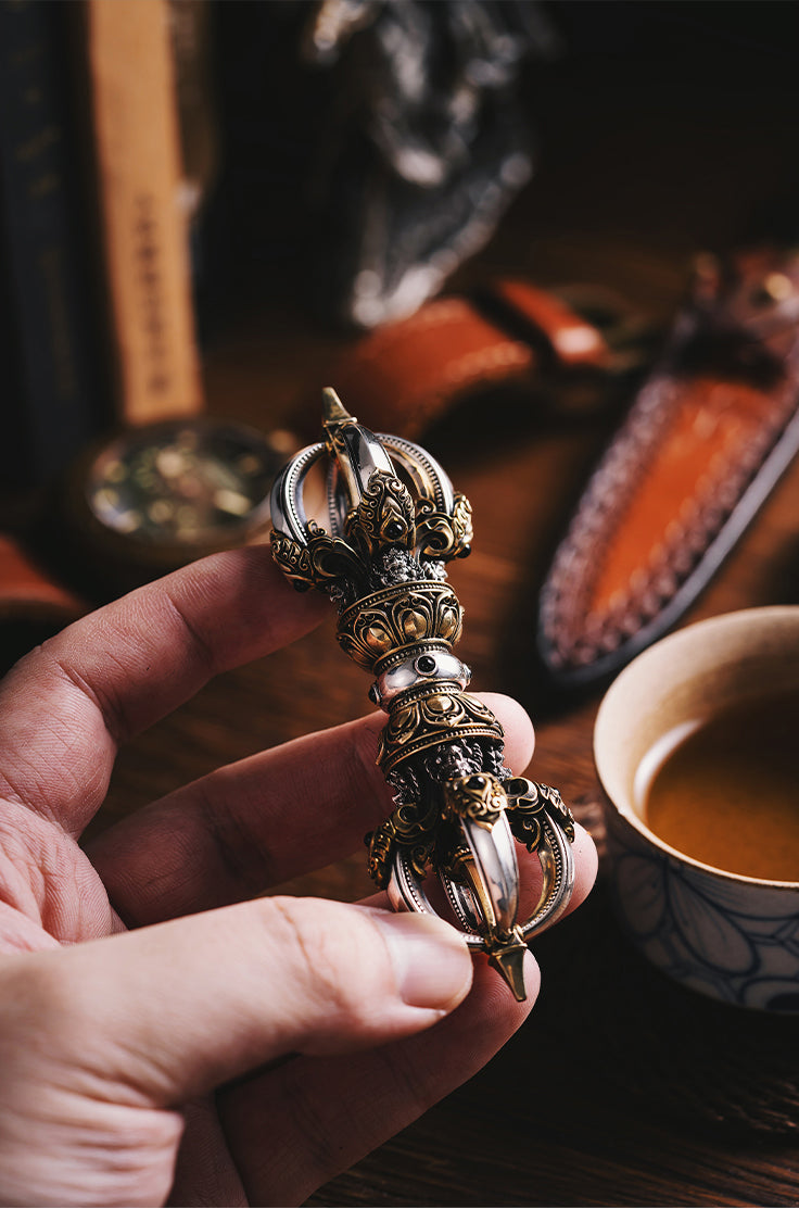 Let this Five-Pronged Protector Vajra accompany your journey—reminding you of inner strength, spiritual protection, and the clarity of the mind.